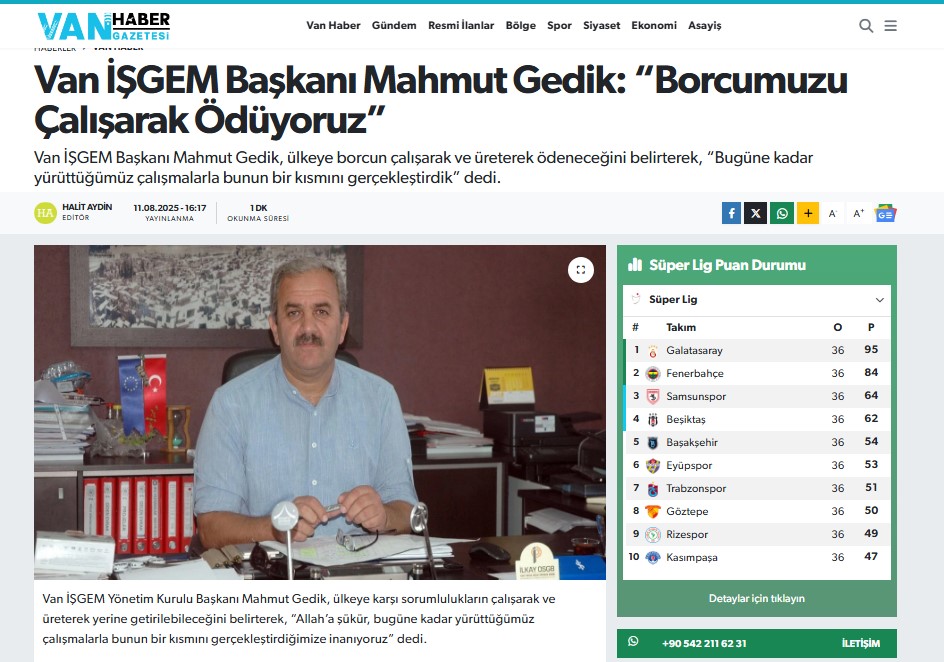 Süphan Mah.İşgem 1.sok.No:13 Edremit Van /Türkiye